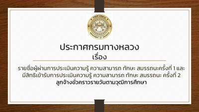 ประกาศกรมทางหลวง รายชื่อผู้ผ่านการประเมินความรู้ ความสามารถ ทักษะ สมรรถนะครั้งที่ 1