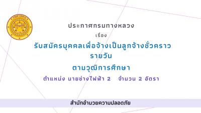 รับสมัครบุคคลเพื่อจ้างเป็นลูกจ้างชั่วคราวรายวันตามวุฒิการศึกษา ตำแหน่งนายช่างไฟฟ้า 2