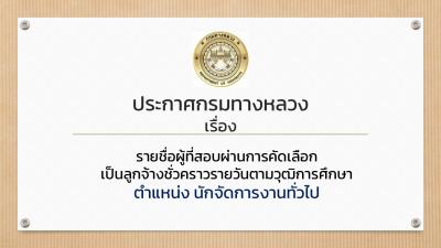 ประกาศกรมทางหลวง รายชื่อผู้ที่สอบผ่านการคัดเลือก เป็นลูกจ้างชั่วคราวรายวันตามวุฒิการศึกษา ตำแหน่ง นักจัดการงานทั่วไป